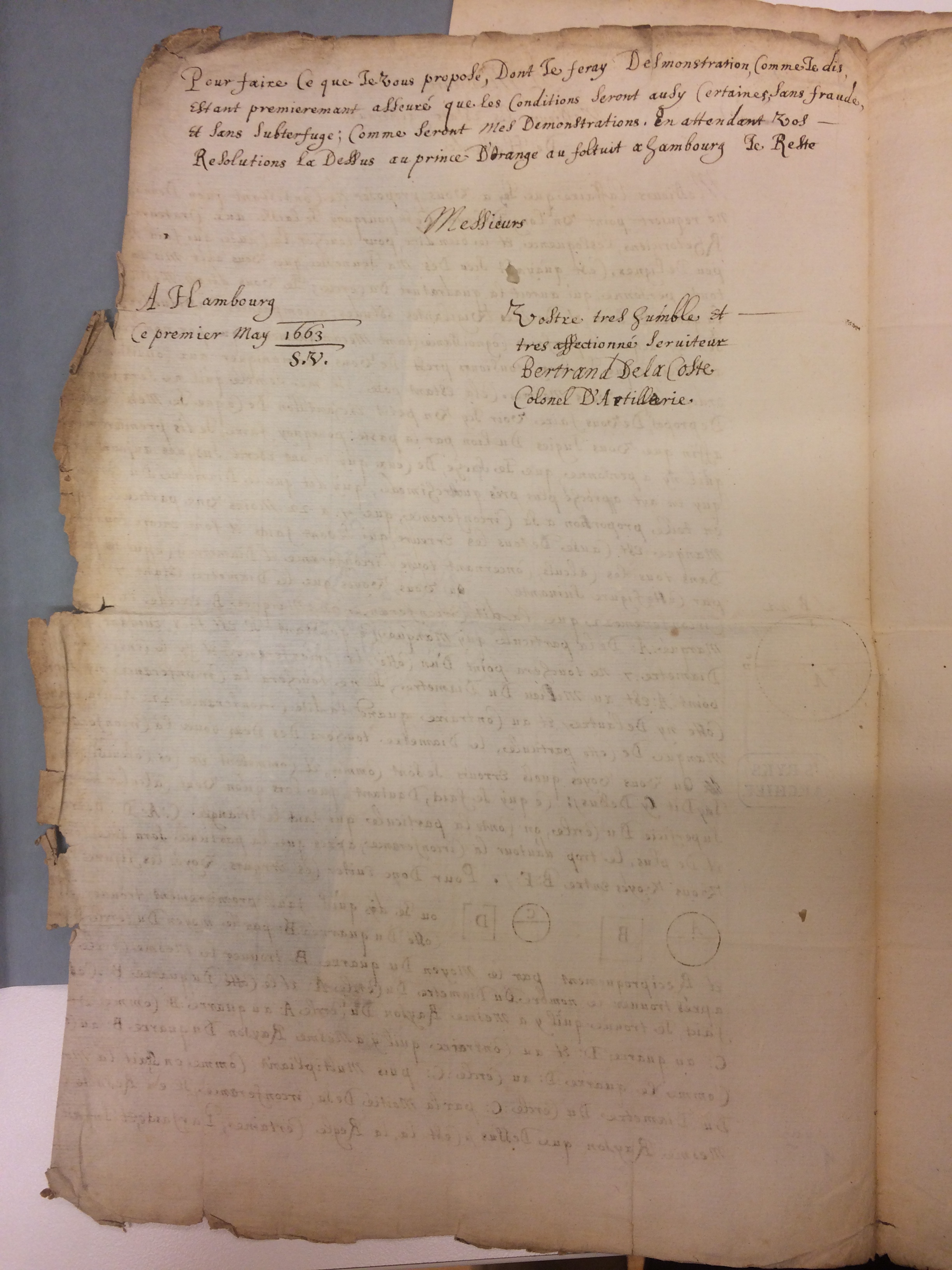 Uit deze brief, die nog niet eerder is uitgegeven, blijkt duidelijk dat Römer verlegen is met de hele situatie. De la Coste blijft bij hem aandringen, overtuigd van zijn gelijk, dat zijn ontdekking zo snel mogelijk bekend moest worden in de Republiek. Römer wist geen andere optie dan deze brief van De la Coste, gericht aan de Staten-Generaal, te zenden an Johan de Witt, in de hoop dat Bertrand hem niet langer dagelijks zou lastig vallen. Zie verder het blog 'Die quadrature des cirkels': Een onmogelijk op te lossen probleem voor meer achtergrond over deze brief.