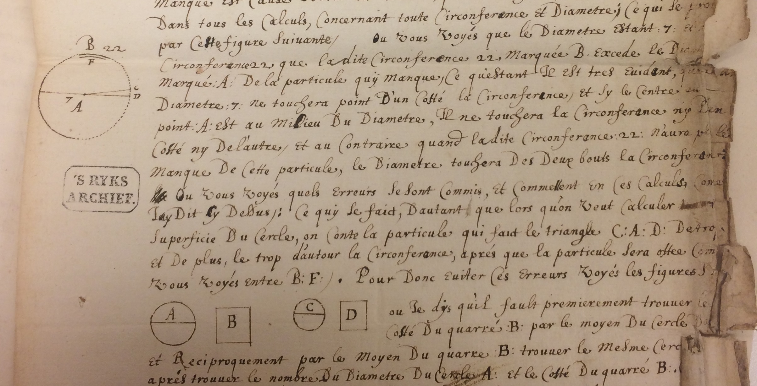 In 1663 ontving Johan de Witt een brief van Matthias Römer (?-1675), resident in Hamburg en Lübeck, met een uitzonderlijk en belangrijk verzoek.(1) Römer had een brief bijgevoegd van een kolonel van de artillerie uit Hamburg, genaamd Bertrand de la Coste. Deze had tussen de veldslagen door zijn tijd gewijd aan geometrie en hij beweerde dat hij een grote ontdekking had gedaan: hij had de oplossing gevonden voor een eeuwenoud wiskundig vraagstuk, de kwadratuur van de cirkel.(2) Al sinds de oudheid hadden grote geleerden als Aristoteles en Descartes zich over het fascinerende probleem gebogen. Hoe kan uit een cirkel een vierkant geconstrueerd worden, dat dezelfde oppervlakte heeft als de cirkel, met behulp van alleen een liniaal en passer?(3)