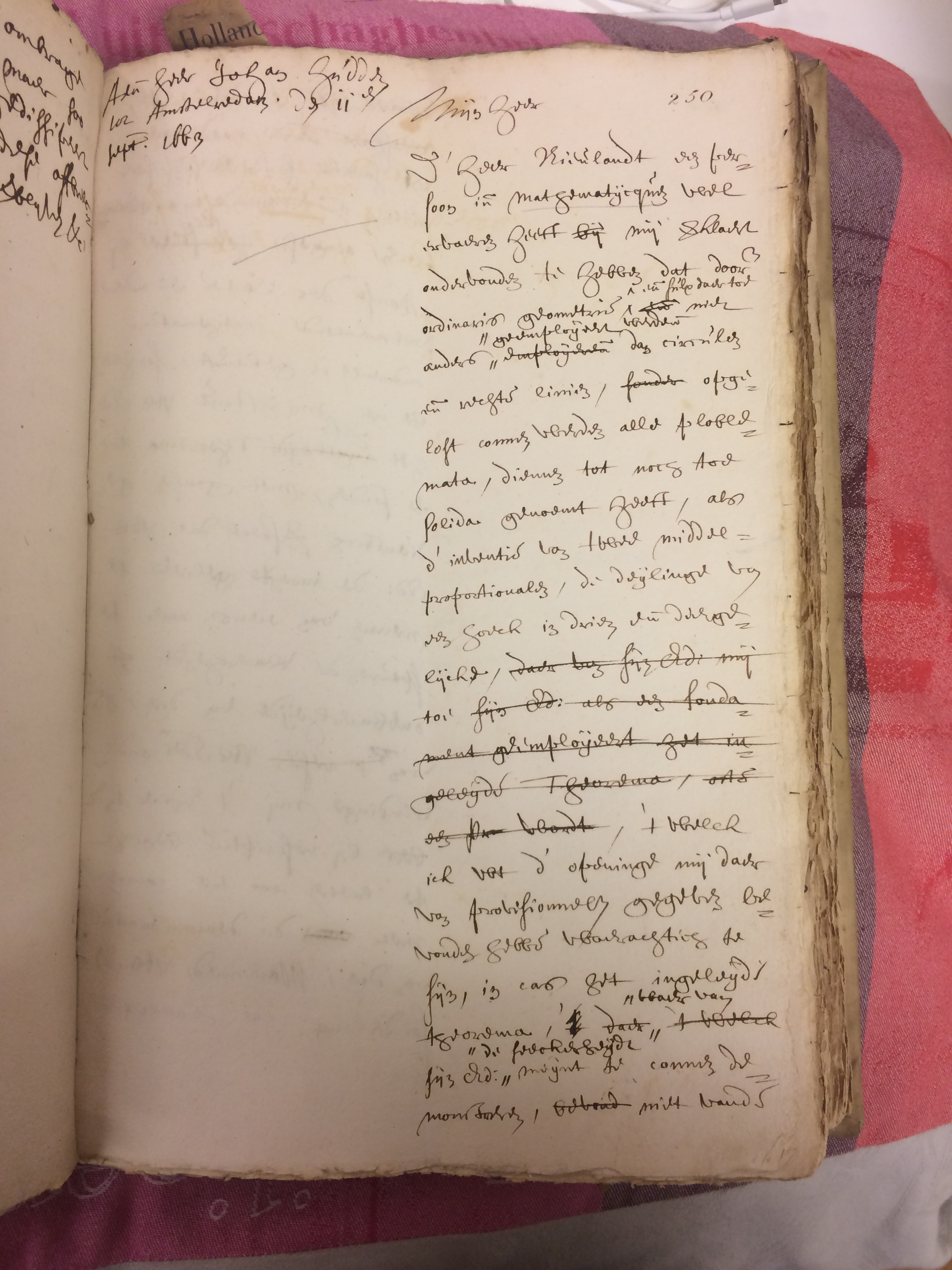 Tegelijkertijd laat de correspondentie van Johan de Witt zien dat hij er zelf ook niet altijd uit kwam. Zo is er in zijn minuten (zijn concept-brieven) een brief opgenomen van 11 september 1663 aan een grote wiskundige van die tijd, Johannes Hudde (1628-1704). Bij deze brief stuurde hij Hudde een overtuigende wiskundige stelling, opgesteld door de heer Nieulandt, met de oplossing van alle klassieke problemen.(7) Johan verzocht Hudde om te onderzoeken of deze wiskundige berekening klopte, wat zeer verbazingwekkend zou zijn omdat zelfs Descartes hier niet uitkwam: